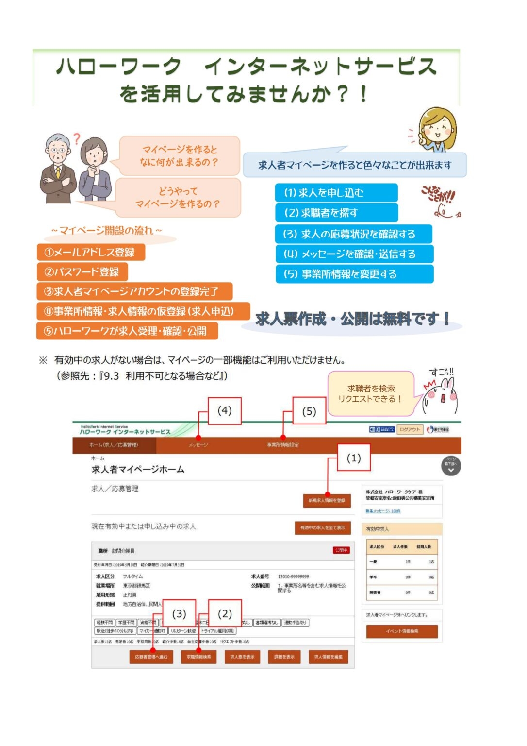 ハローワークの求人票公開は 無料 です。